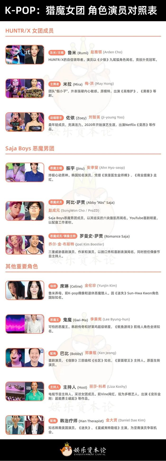 娱乐资本论梳理本片完整产业版图发现,不论Netflix、索尼还是TheBlackLabel,现有资料中没有任何证据表明有中国公司直接注资、入股或影响上述公司关于《猎魔女团》的制作或发行。