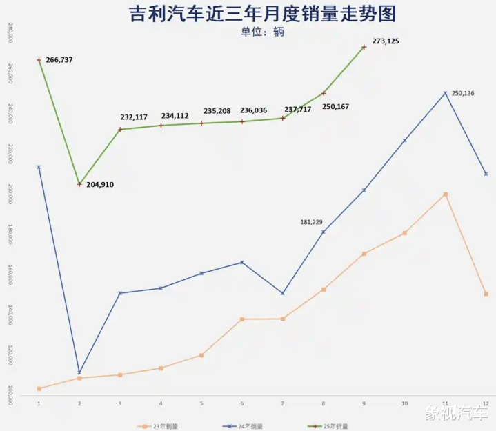 数据显示,吉利汽车9月份爆卖27.31万辆,同比劲增35%,单月销量创下了历史新高。